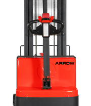 This electric stacker uses a battery-powered hydraulic to lift up to a max of 3.5 metres. It is also self propelled with a simple controller.
